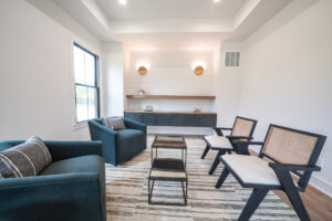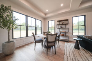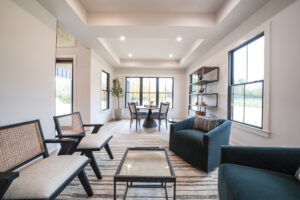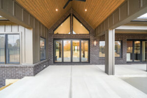 The Aspen’s most striking feature is its seamless transition to the outdoors. The great room and kitchen feature two sets of incredible breakaway style glass doors that fold open completely to an expansive covered outdoor living area. This creates a true indoor outdoor retreat, perfect for hosting summer gatherings or simply enjoying the tranquil property.