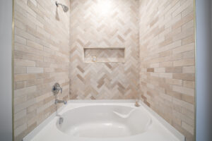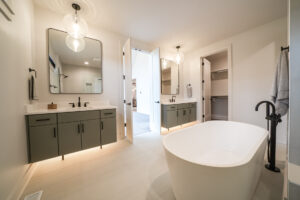 The Aspen offers flexible living with two suites on the main floor. The primary suite is a luxurious escape, boasting a vaulted ceiling, two walk-in closets, a freestanding soaker tub featuring Moen® floor-mounted hardware, split double vanities, under cabinet lighting, a zero-entry walk-in tiled shower with dual heads and built-in seat.