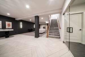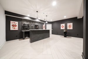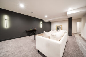 - A massive finished rec room with custom accent lighting